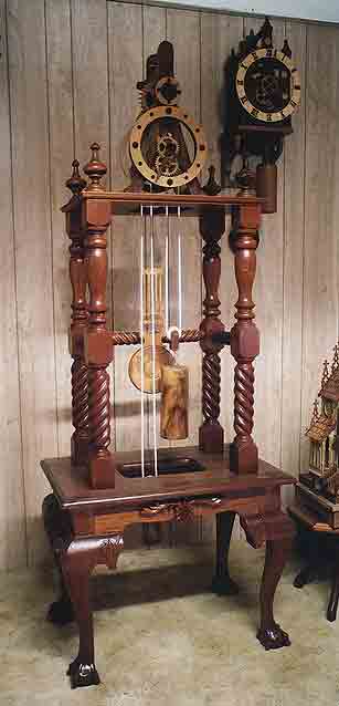 cut gears and turned shafts. Some are weight driven and some are powered by